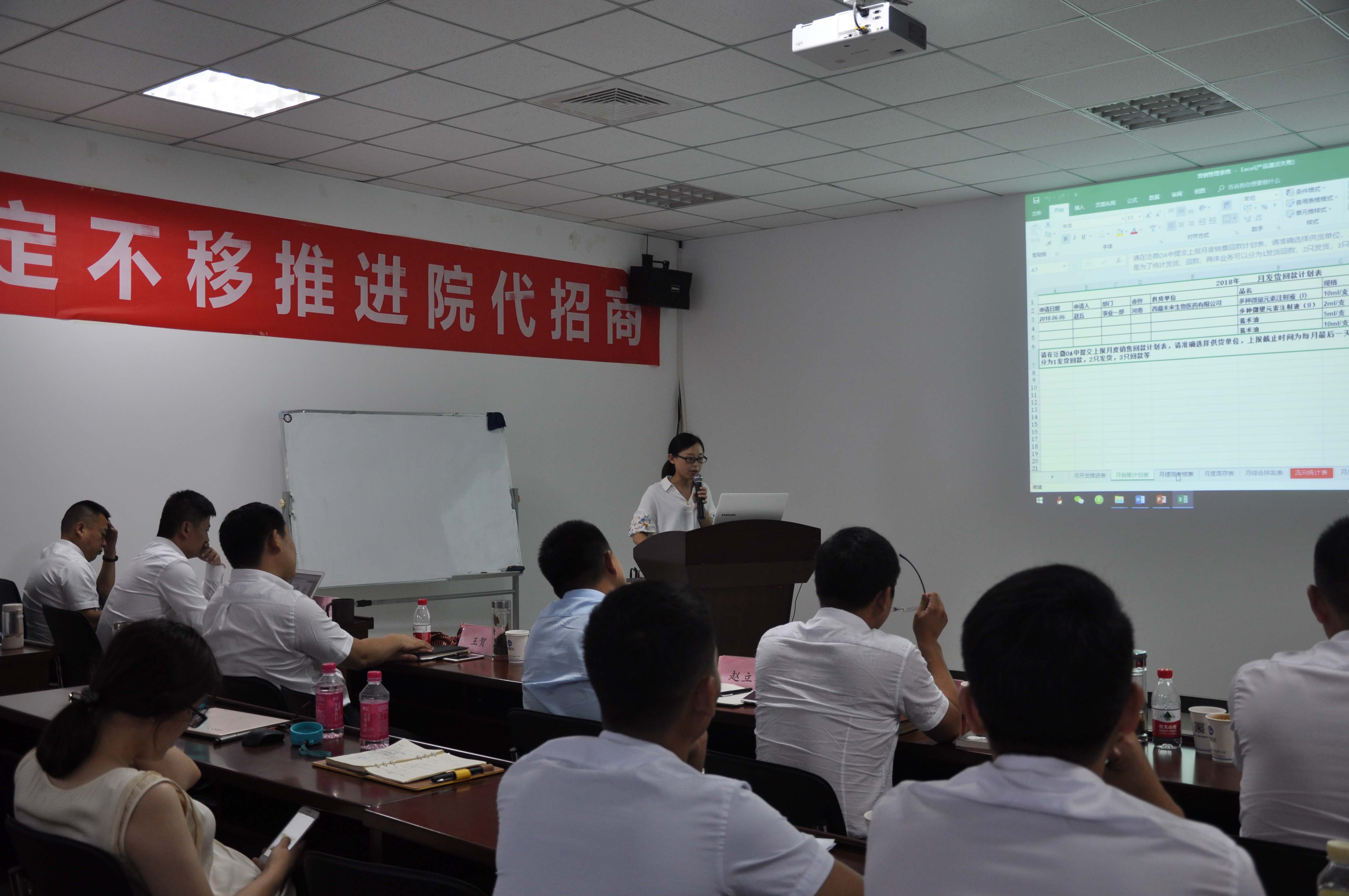 财税运营控制管理中心销售财务部经理孙晶晶就费用规范以及销售数据进行了通报,对各省份上半年流向指标达成情况、劳动投入与产出数据进行了全面的统计和详实的分析。